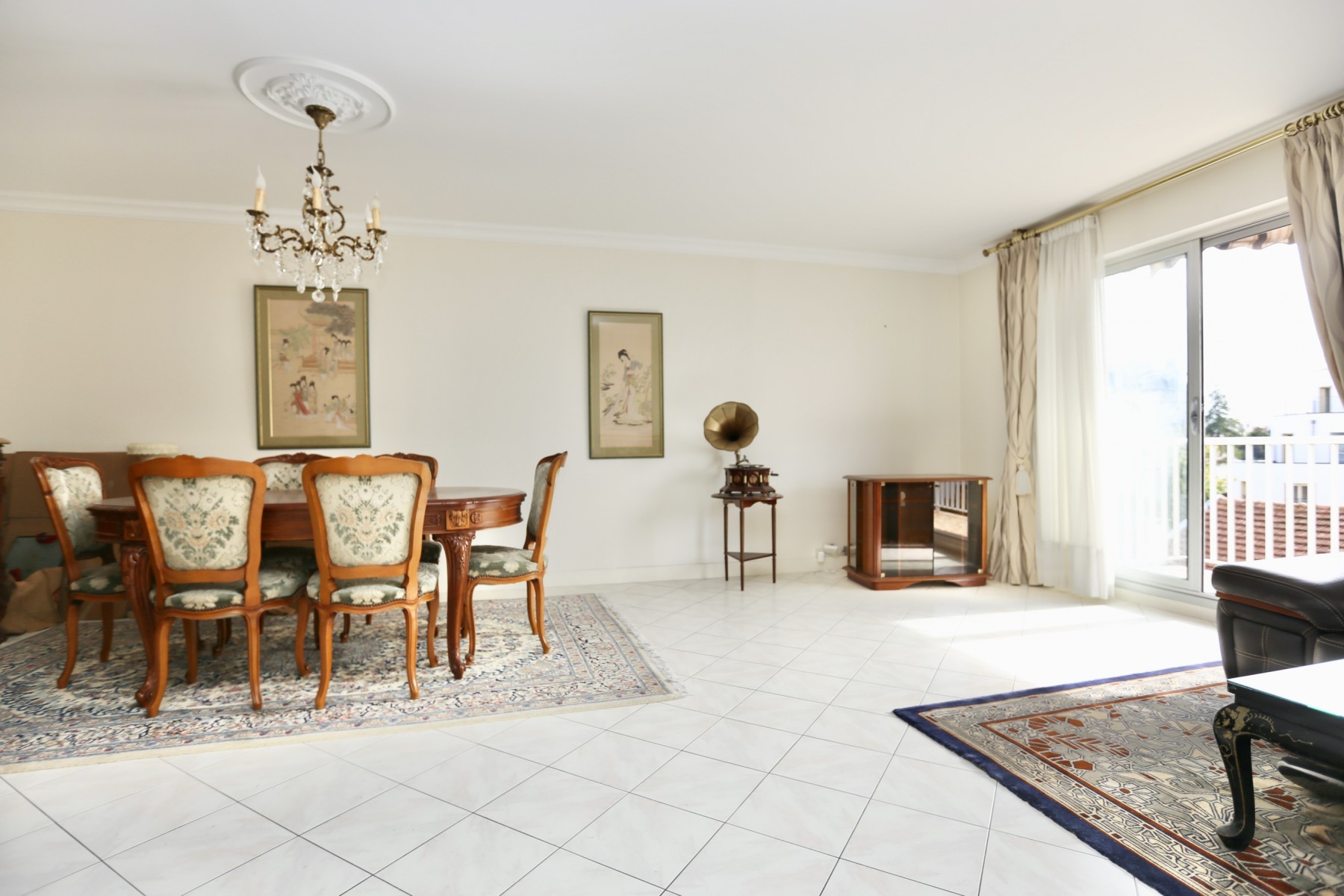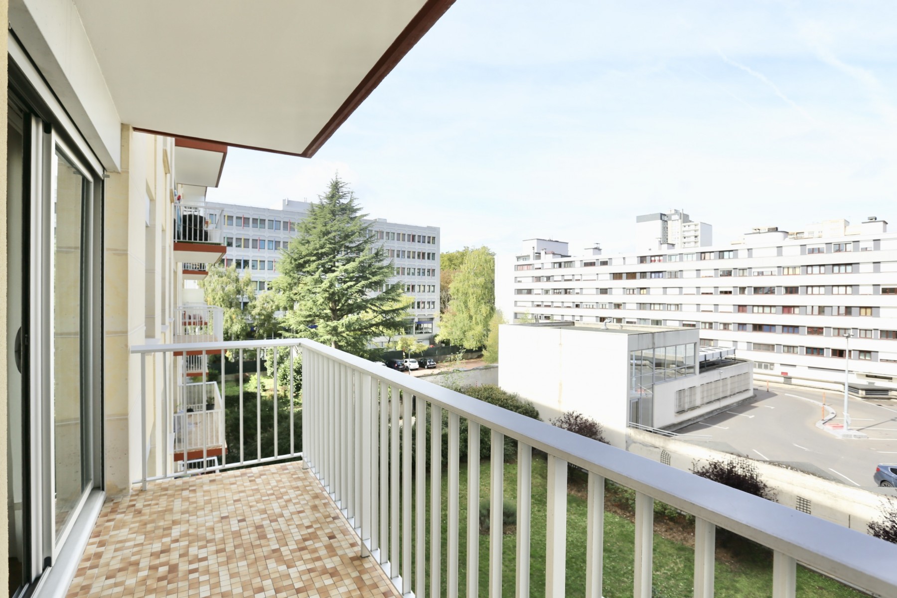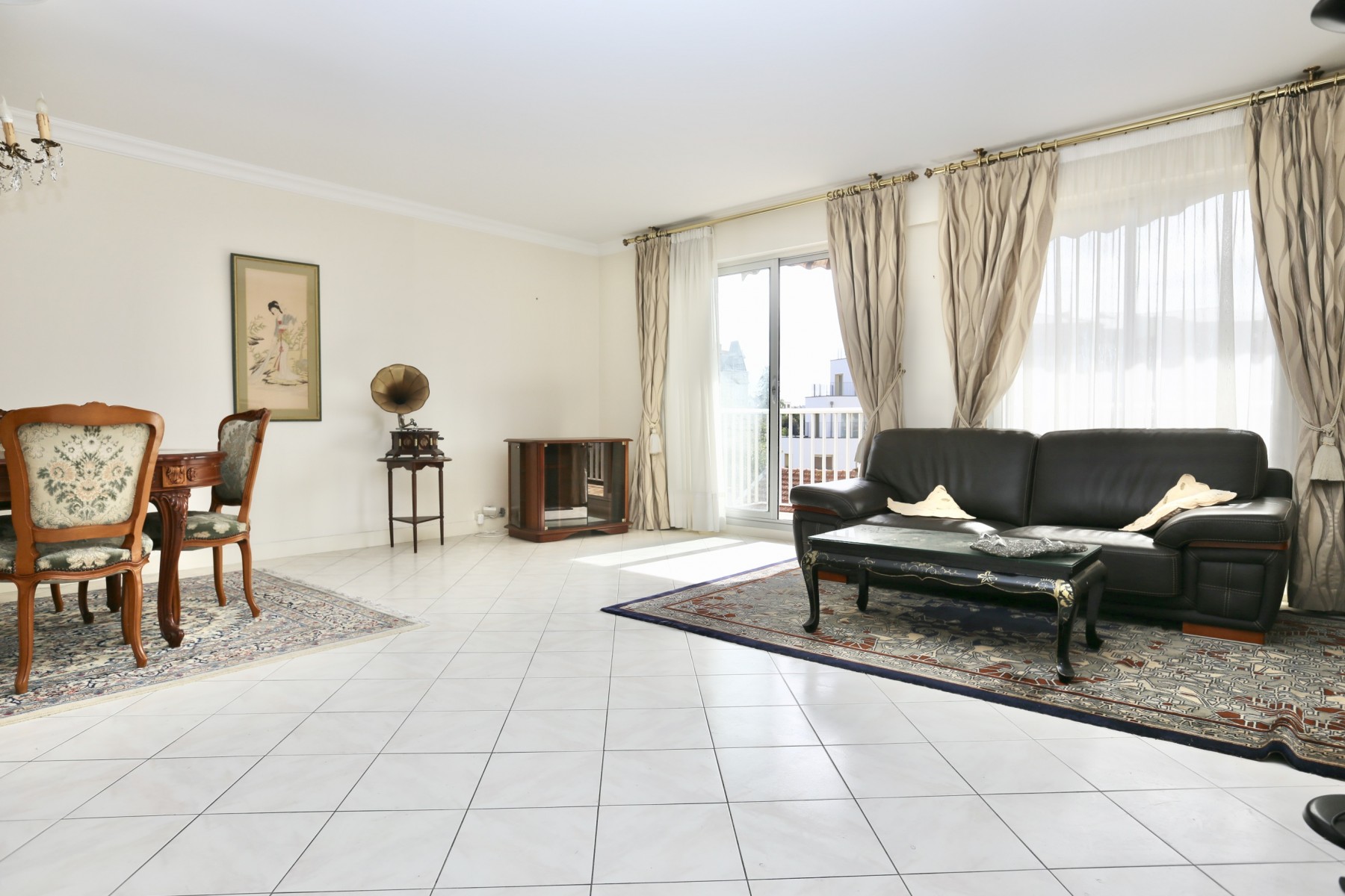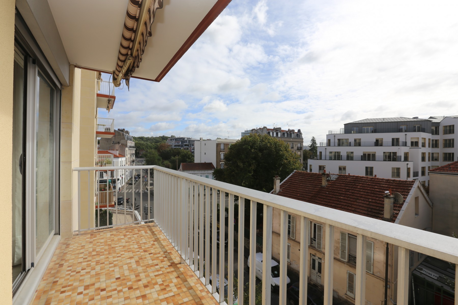 Appartement traversant de 99 m2 comprenant entrée séjour double, 2 balcons, cuisine séparée et aménagée, dégagement desservant cellier, 3 chambres, salle de bains. Nombreux rangements, cave en sous-sol. Commerces et gare RER E centre ville