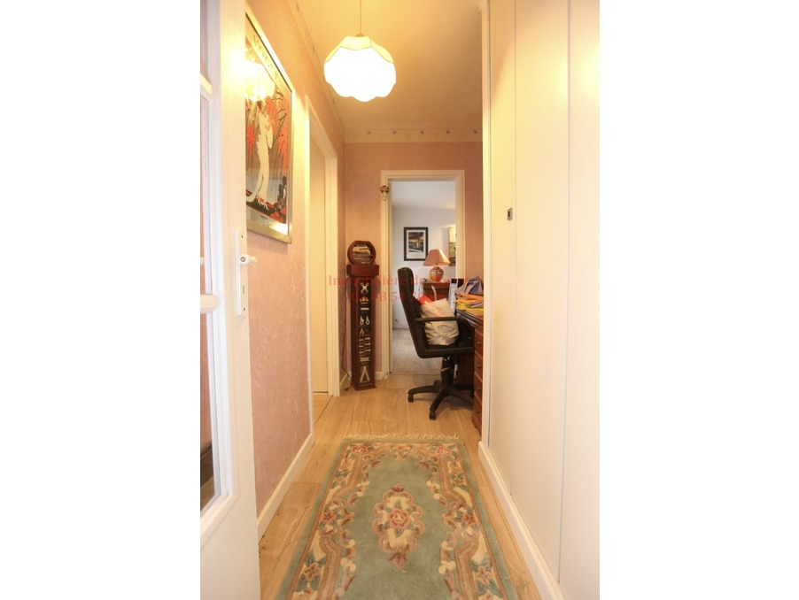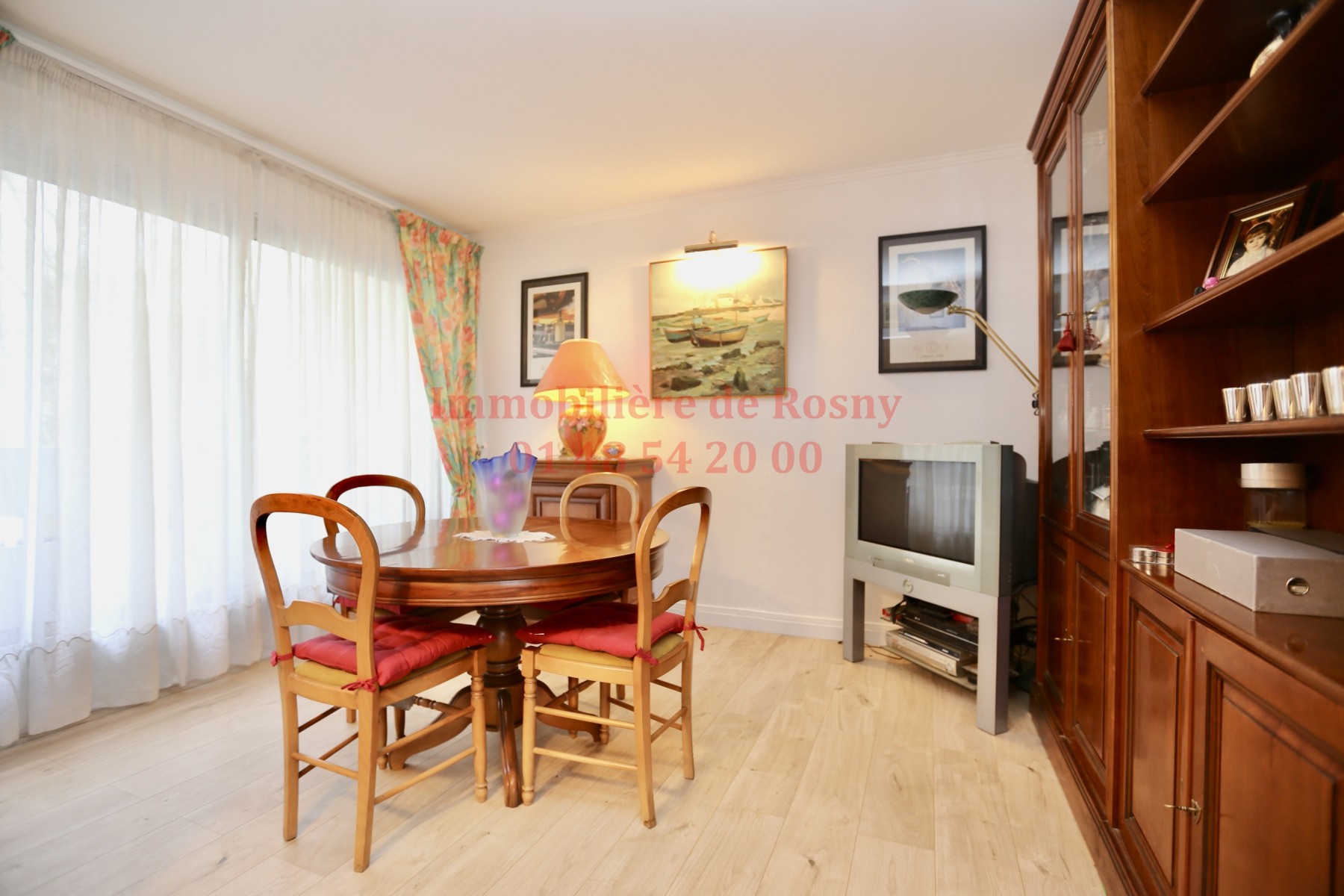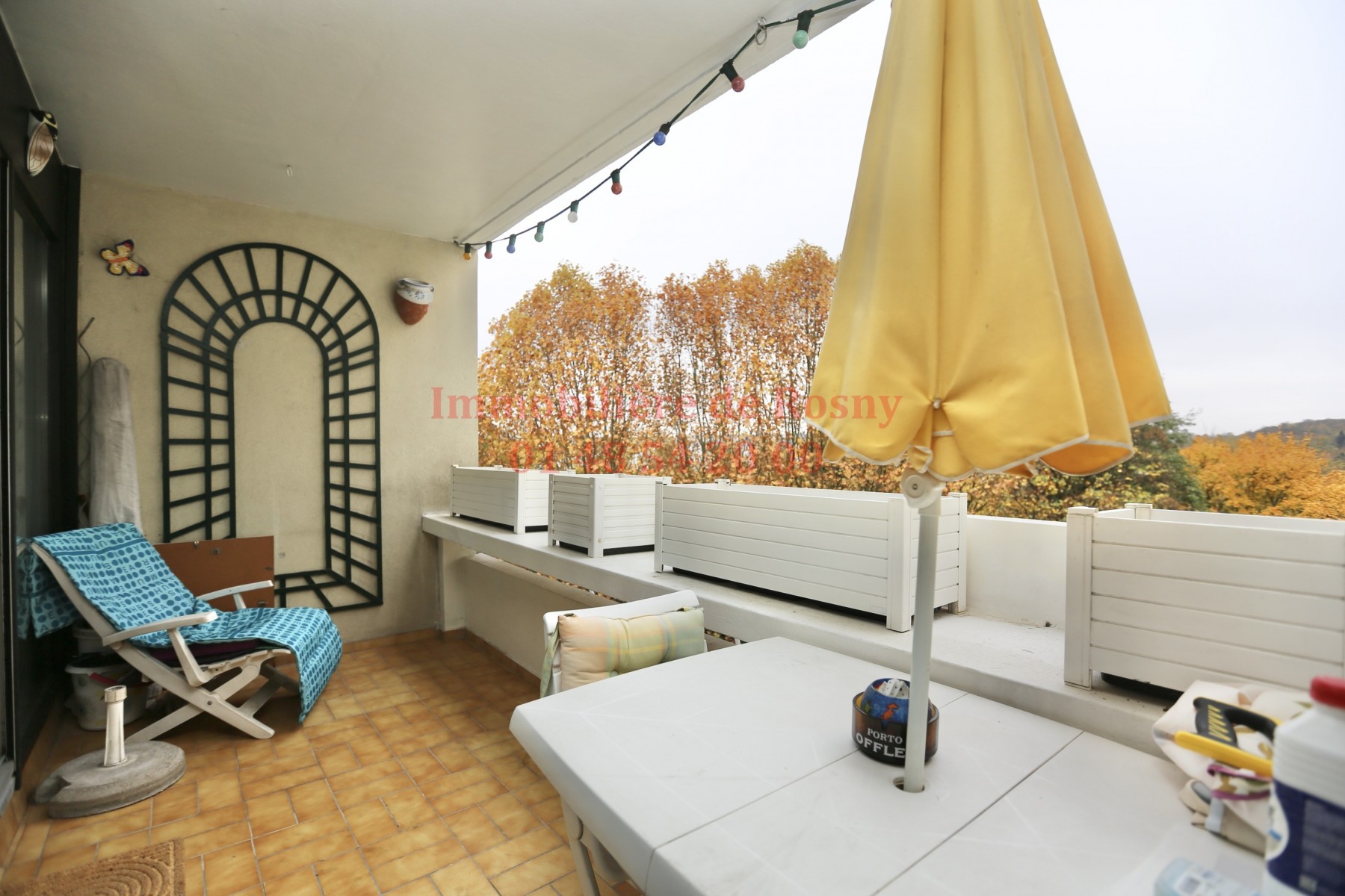 Appartement avec une vue imprenable ! Proche commerces et transports ! Au 3ème étage d'une résidence sécurisée et bien entretenue, un appartement 4 pièces traversant comprenant une belle entrée, séjour avec grand balcon, salle à manger, cuisine séparée avec cellier, dégagement avec plusieurs placards et coin bureau, 1ère chambre avec placards, salle de bains et balcon, 2ème chambre avec placards, salle d'eau et balcon également, WC séparés. Appartement en très bon état général, aucun travaux à prévoir ! Possibilité avec une cloison d'avoir 3 chambres qui a déjà sa porte sur le couloir. Chaque pièce, séjour, salle à manger, et les 2 chambres, possède son propre balcon. Le balcon du séjour offre une vue dégagée, lointaine et sans aucun vis-à-vis sur la nature avec une exposition SUD ! À 5min à pied du Métro 11 La Dhuys ! Place de parking couverte. Bien soumis à la copropriété.