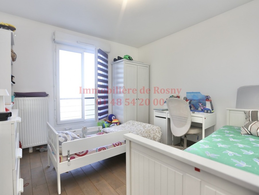 Au dernier étage d'un immeuble récent proche du métro 11, un appartement 5 pièces, 4 chambres, comprenant une belle entrée, séjour / salle à manger avec terrasse exposée Sud, cuisine séparée aménagée avec coin buanderie, 4 chambres dont une avec salle d'eau et WC privatifs, dégagement avec placards dressing, salle de bains avec double vasque, 2e WC séparés. Appartement traversant, au 6ème et dernier étage, sans aucun vis-à-vis ! 4 vraies chambres ! Possibilité d'agrandir la pièce à vivre en enlevant une chambre. Place de parking en sous-sol. À 2min à pied des commerces et 7min du métro 11 ! Bien soumis à la copropriété.