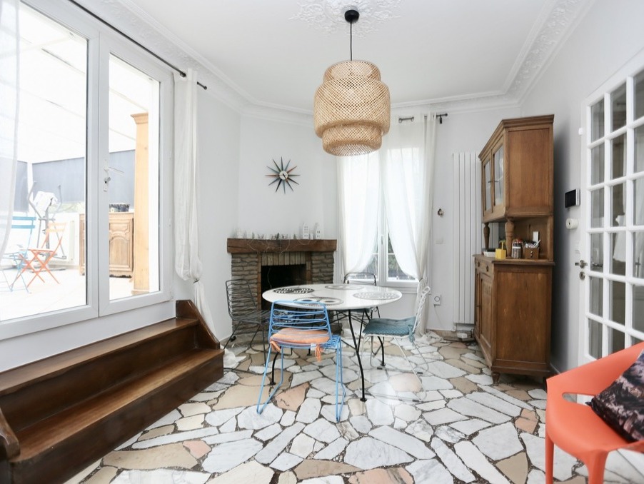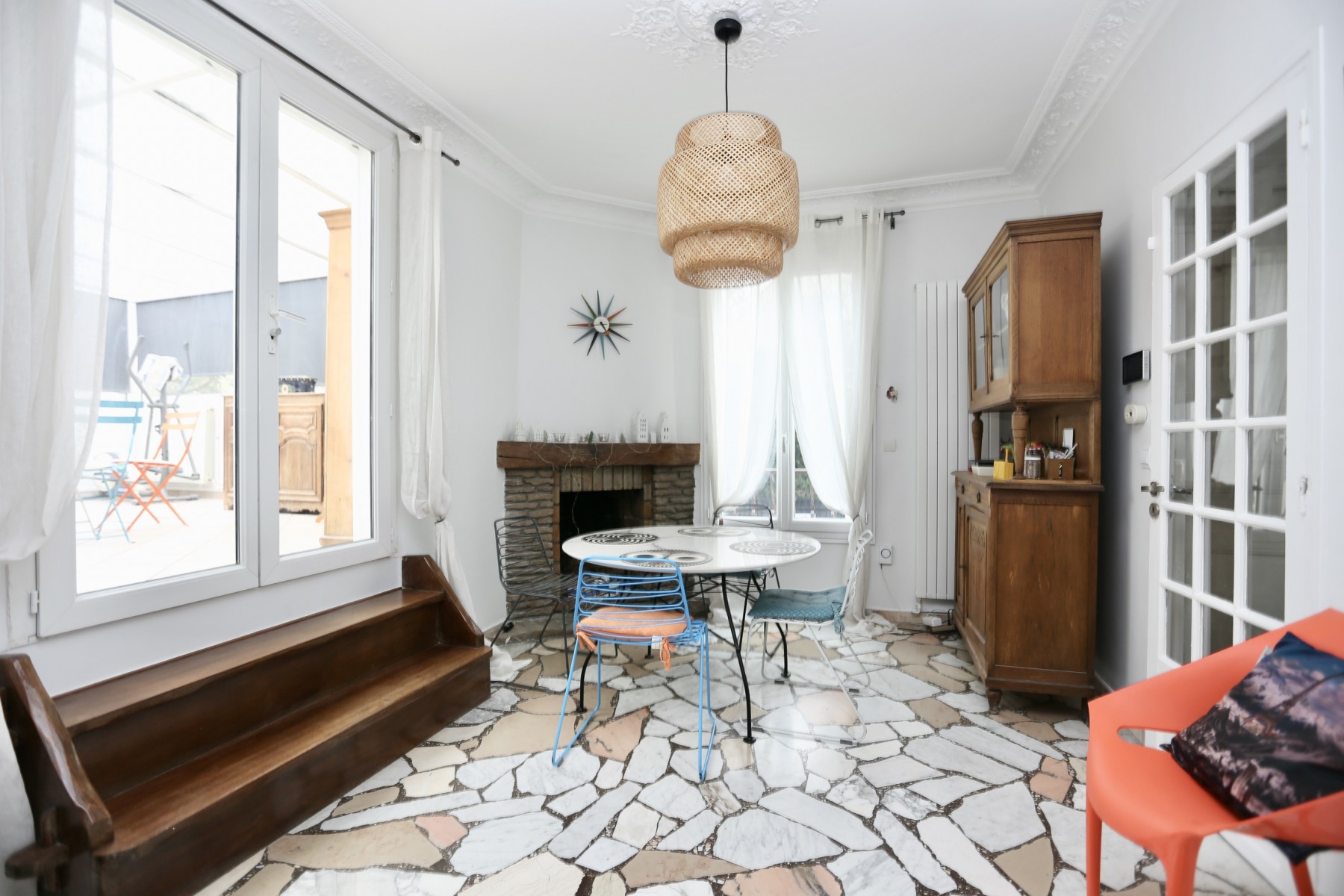 Maison de 120 m2 environ comprenant entrée, séjour sur terrasse avec cuisine ouverte, wc, à l'étage, 3 chambres, salle de bain, wc, combles aménagés e...