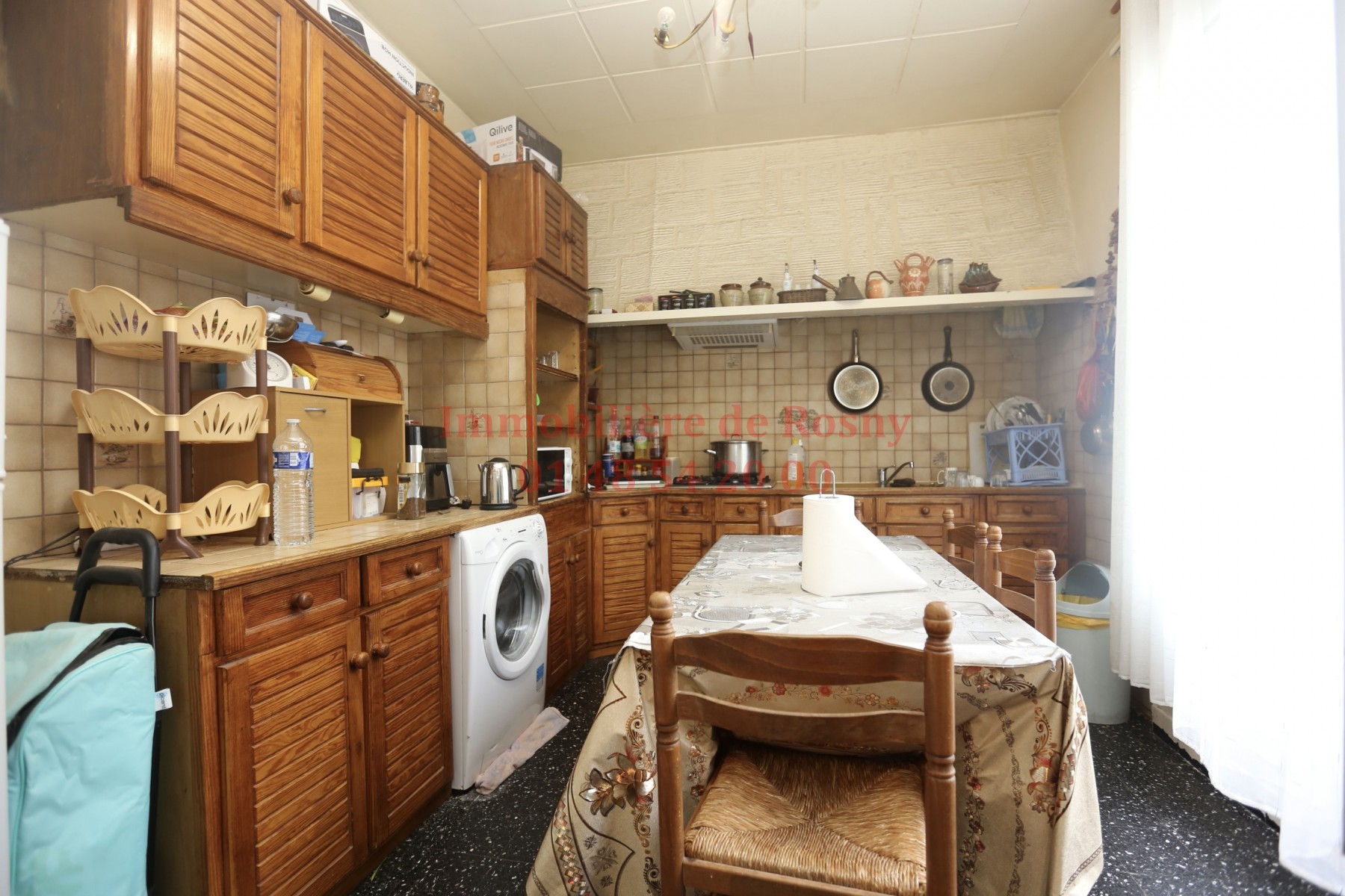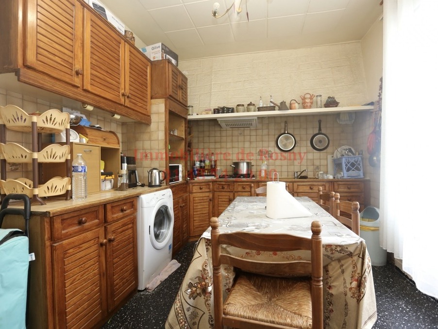Emplacement parfait, maison d'une surface totale de 120m2 environ comprenant au rez-de-chaussée, une entrée, séjour / salle à manger avec accès terrasse, grande cuisine séparée, WC séparés. Au premier étage il y a 2 chambres dont une grande et une suite avec coin dressing et salle de bains, WC séparés, puis un 2ème étage avec une grande chambre et une autre salle de bains. Sous-sol total composé d'un bureau / chambre d'appoint, salle d'eau avec WC, cave, chaufferie et buanderie. Garage sur le côté de la maison. Chauffage et eau chaude par pompe à chaleur ! Maison de ville avec garage et petite terrasse à l'arrière. À 2min à pied du RER E Rosny-sous-Bois et du Marché couvert À 3min à pied des commerces (Boulangerie, supermarché, pharmacie...etc) Prévoir rafraichissement global